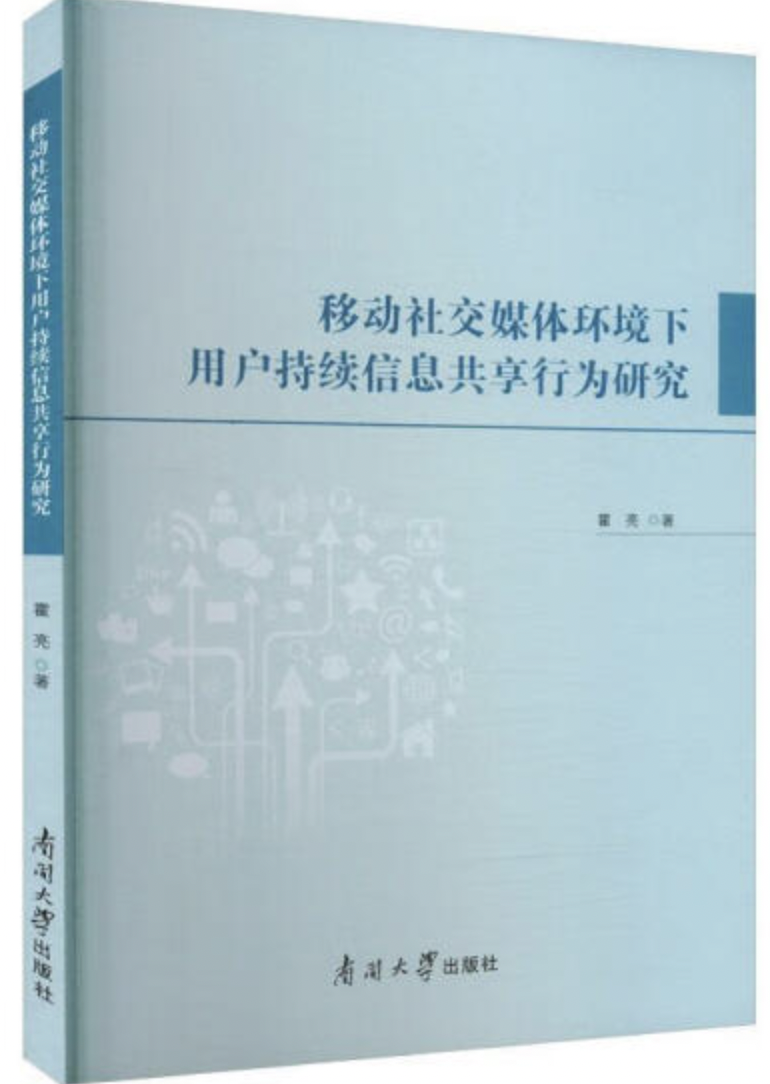 由太阳成集团tyc33455cc霍亮教授撰写的专著《移动社交媒体环境下用户持续信息共享行为研究》在南开大学出版社正式出版。该书的出版对于推动移动社交媒体的发展,提高用户信息共享的积极性和持续性具有重要意义。