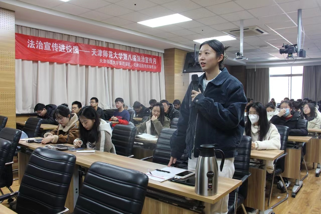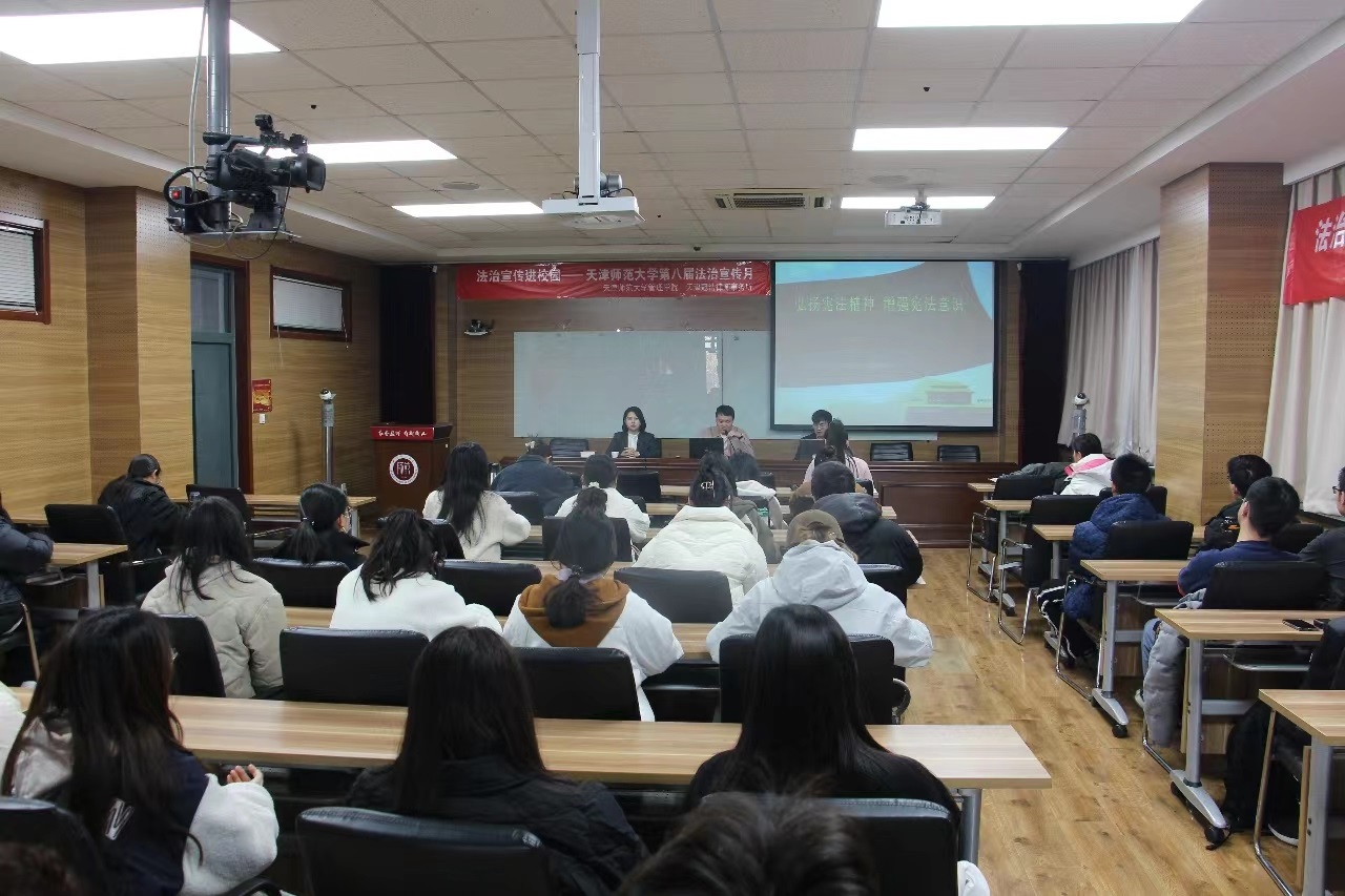 为深入学习贯彻习近平法治思想,进一步加强法治宣传教育,营造学法、遵法、讲法的良好氛围,在我国第十个宪法日来临之际,结合公司开展的第八届法制宣传月活动,太阳成集团tyc33455cc于12月4日在兴文楼A219举办了法治宣传进校园活动。活动邀请到天津冠浩律师事务所韩松、赵薇、刘东洋三位律师到校,开展法治宣传讲座和法律咨询服务,70多名员工参与活动,活动由学工办主任刘鹏主持。