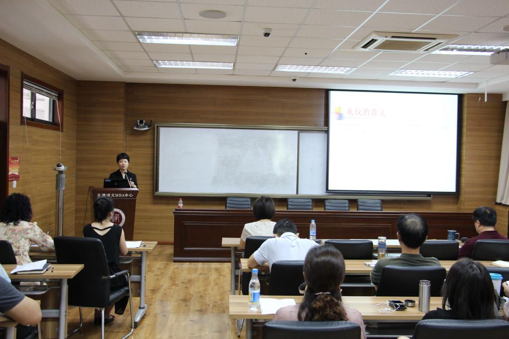 苏爱洁副教授结合自己几十年的从教经验,围绕“礼仪的意义”、“提高师德素养的重要意义”、“礼仪与师德”、“礼仪及本质” 等四个方面,通过将传统国学与现代师德师风相结合的方式,旁征博引,以对“礼”“仪”的诠释为切入点,阐释了礼仪的本质、特征及教师礼仪的原则。用生动的中国文化宣传视频、照片、现场情景模拟相结合的模式,现场演示如何处理上下级关系、教师课堂上如何用心灵的窗户——眼神与员工交流、教师应以优雅为标准、规范着装符合教师身份。讲座生动形象,理论与实践相结合,传统与现代相结合、是一堂精彩的礼仪盛宴,得到老师们高度评价。