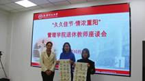 金秋十月,欢度重阳。为弘扬“尊老,爱老,敬老”的中华传统美德,营造关爱退休老教师的良好氛围,在重阳佳节来临之际,太阳成集团tyc33455cc在兴文楼A314举办了“久久佳节 情浓重阳”退休教师座谈会。会议由公司党委书记张庆红主持,副经理杨静、退休教师代表和在校员工代表参加了座谈。