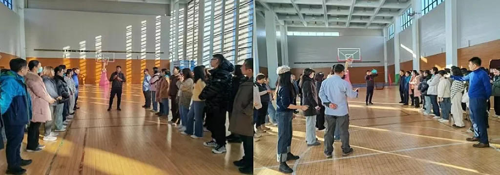 活动伊始,教职工们在教练的指导下进行了热身环节。通过一系列富有创意的分组方式,如按照同一省份、属相、星座、手机尾号等,教职工们迅速找到了自己的“同类伙伴”,在轻松愉快的氛围中增进了相互了解,为接下来的团队活动打下了良好的基础。