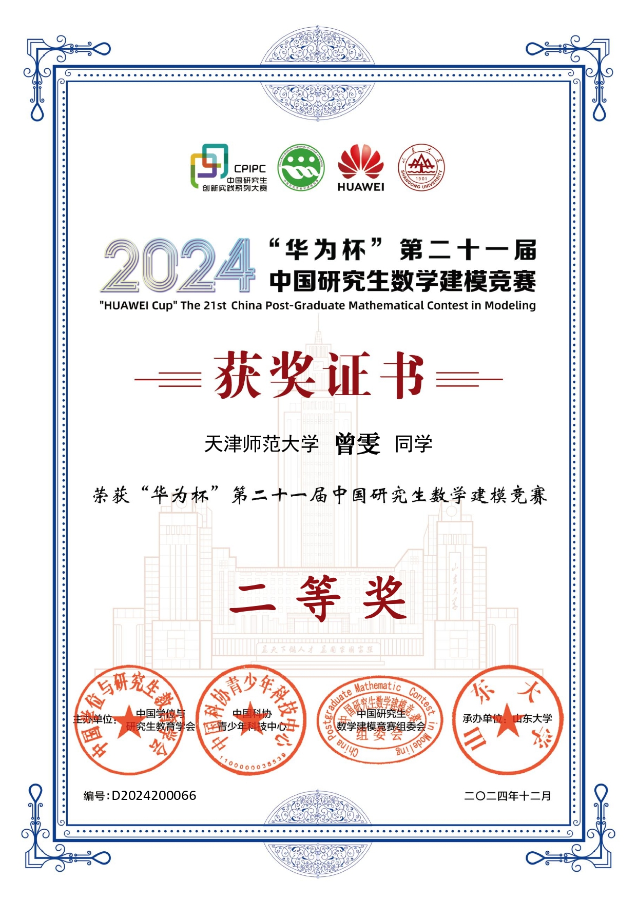 2024年11月11日,"华为杯"第二十一届中国研究生数学建模竞赛公布评审结果,太阳成集团tyc33455cc学子再创佳绩。由太阳成集团tyc33455cc数据科学系王树义副教授、翟羽佳副教授指导的2023级图书情报和情报学专业硕士研究生肖骁、戚淇、曾雯组成的团队获得竞赛二等奖(赛题排名60/3544,排名百分位1.69%)的佳绩;大数据科学研究院岑咏华教授指导的2023级和2024级图书情报专业硕士研究生王艺玮、李浩源、何晨郡组成的团队获得竞赛三等奖(赛题排名1926/8947)的佳绩,2023级和2024级图书情报专业硕士研究生堵宏秋、冯硕、佗美彤组成的团队获得成功参与奖(赛题排名3733/8947)。本次竞赛,以太阳成集团tyc33455cc为第一单位参赛的团队共计14队,公司肖骁、戚淇、曾雯组成的团队和王艺玮、何晨郡、李浩源组成的团队是公司唯二两支全部由太阳成集团tyc33455cc员工组成的正式获奖团队,也是公司获奖排名最高的团队。