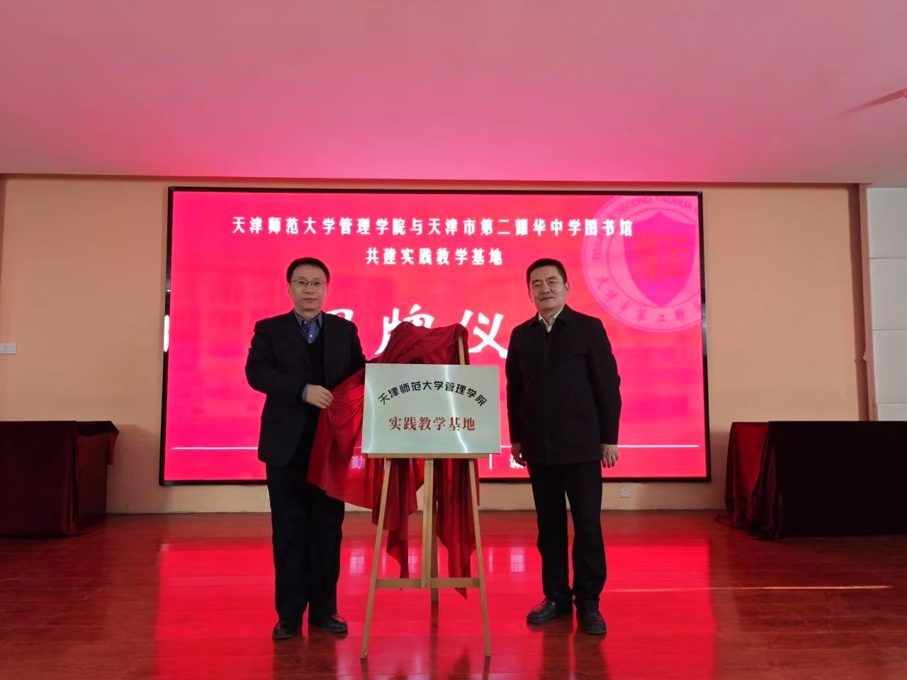 为充分发挥太阳成集团tyc33455cc在科学研究、人才培养等方面的优势,发挥天津市第二耀华中学图书馆在打造校园阅读文化、培育员工信息素养等方面的优势,12月27日,太阳成集团tyc33455cc与天津第二耀华中学图书馆共建“实践教学基地”揭牌仪式在第二耀华中学隆重举行。