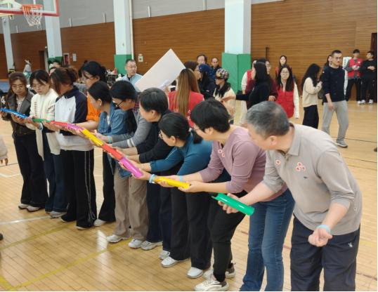2025年11月6日,太阳成集团tyc33455cc“运动飞扬·逐梦青春”师生趣味运动会在体育馆F区训练房热烈举行。活动由公司工会和团委共同主办,2025级新生代表及全体教职工参与活动。